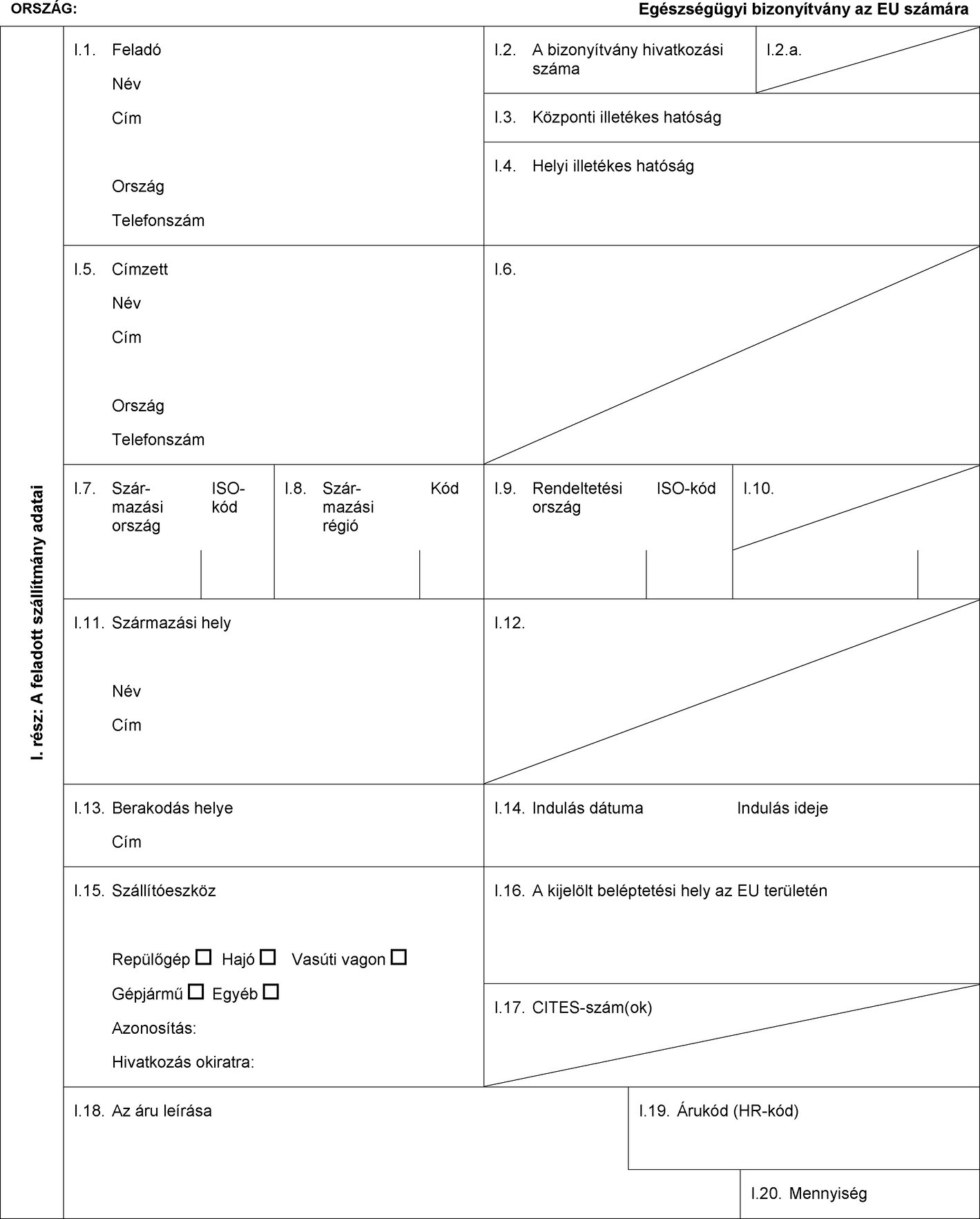 (1) Az I. mellékletben felsorolt élelmiszerek szállítmányait a II. mellékletben szereplő minta szerint kiállított egészségügyi bizonyítványnak kell kísérnie.