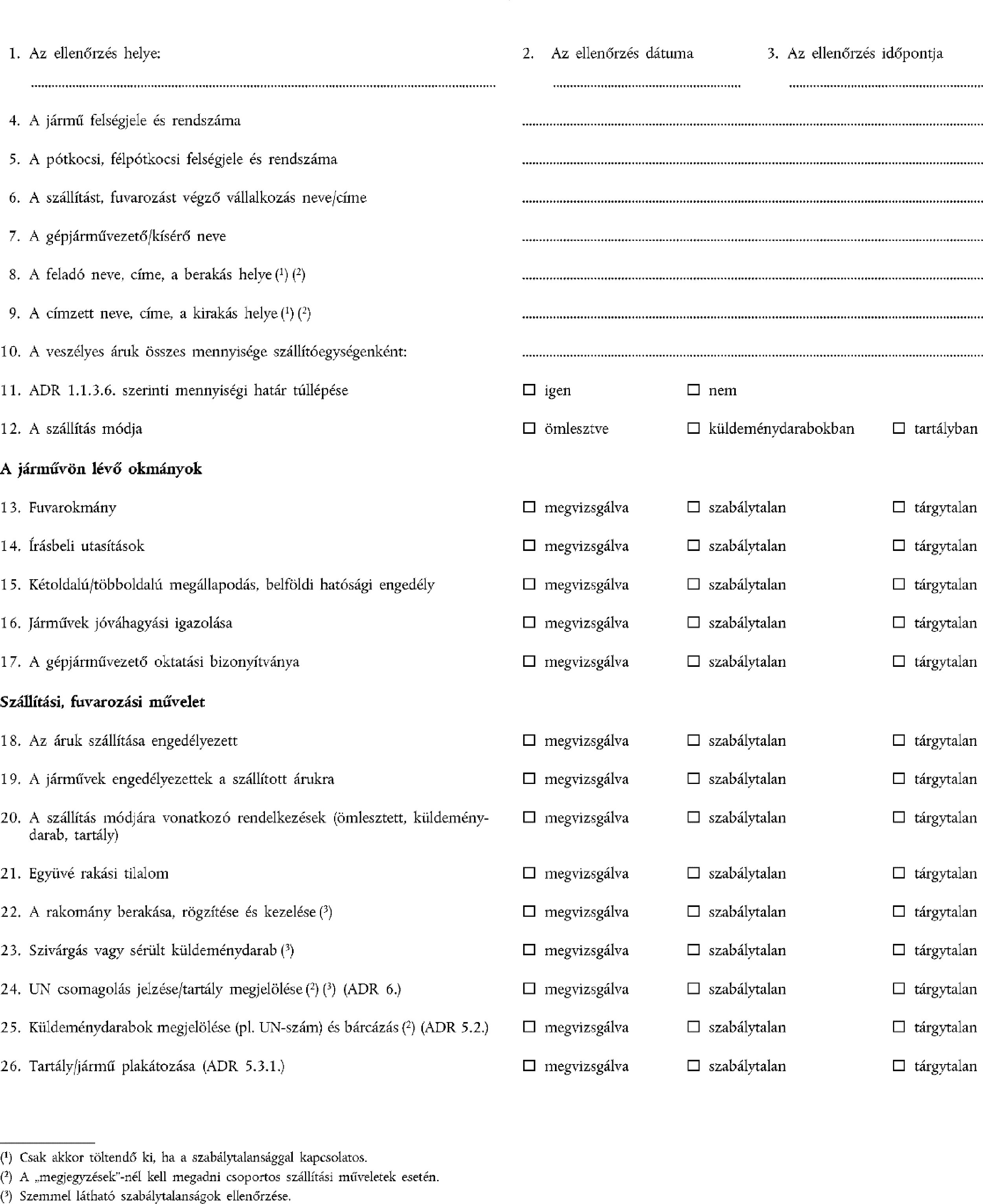 A rakomány tartalma (és az ADR) alapján ellenőrzött szállítóegységek száma | |||||
