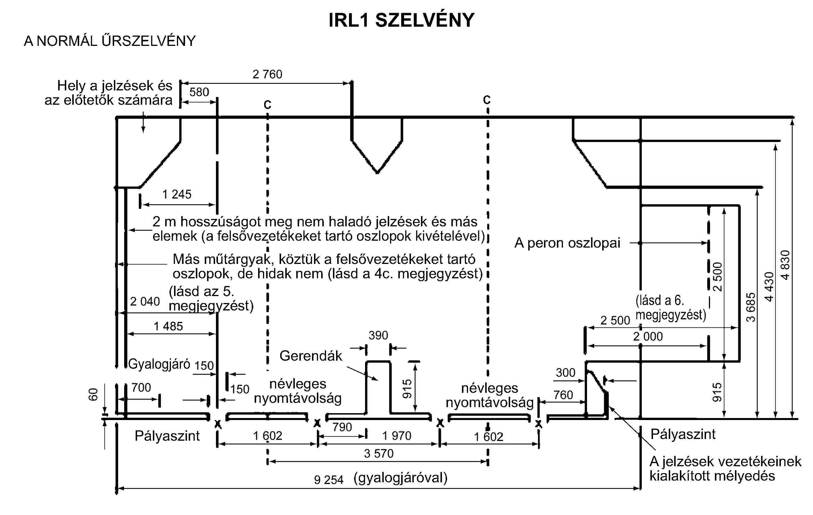 Legkisebb űrszelvény / Mindestlichtraum / Gabarit minimal d’infrastructure | A meghatározást lásd a 4.2.3. szakaszban |