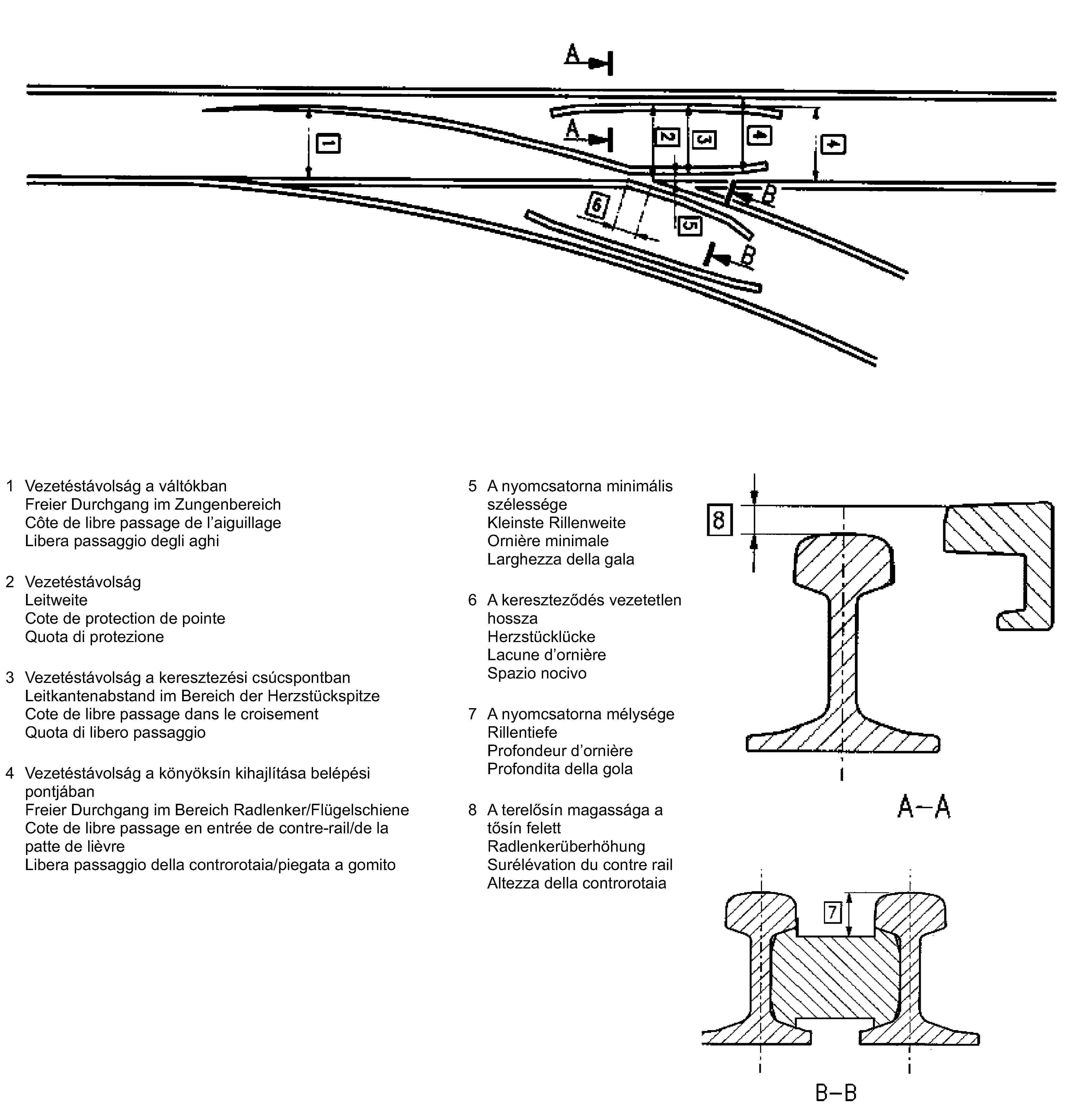 Vezetéstávolság a váltókban / Freier Durchgang im Zungenbereich / Cote de libre passage de l’aiguillage | A meghatározást lásd az E. mellékletben (1. pont) |