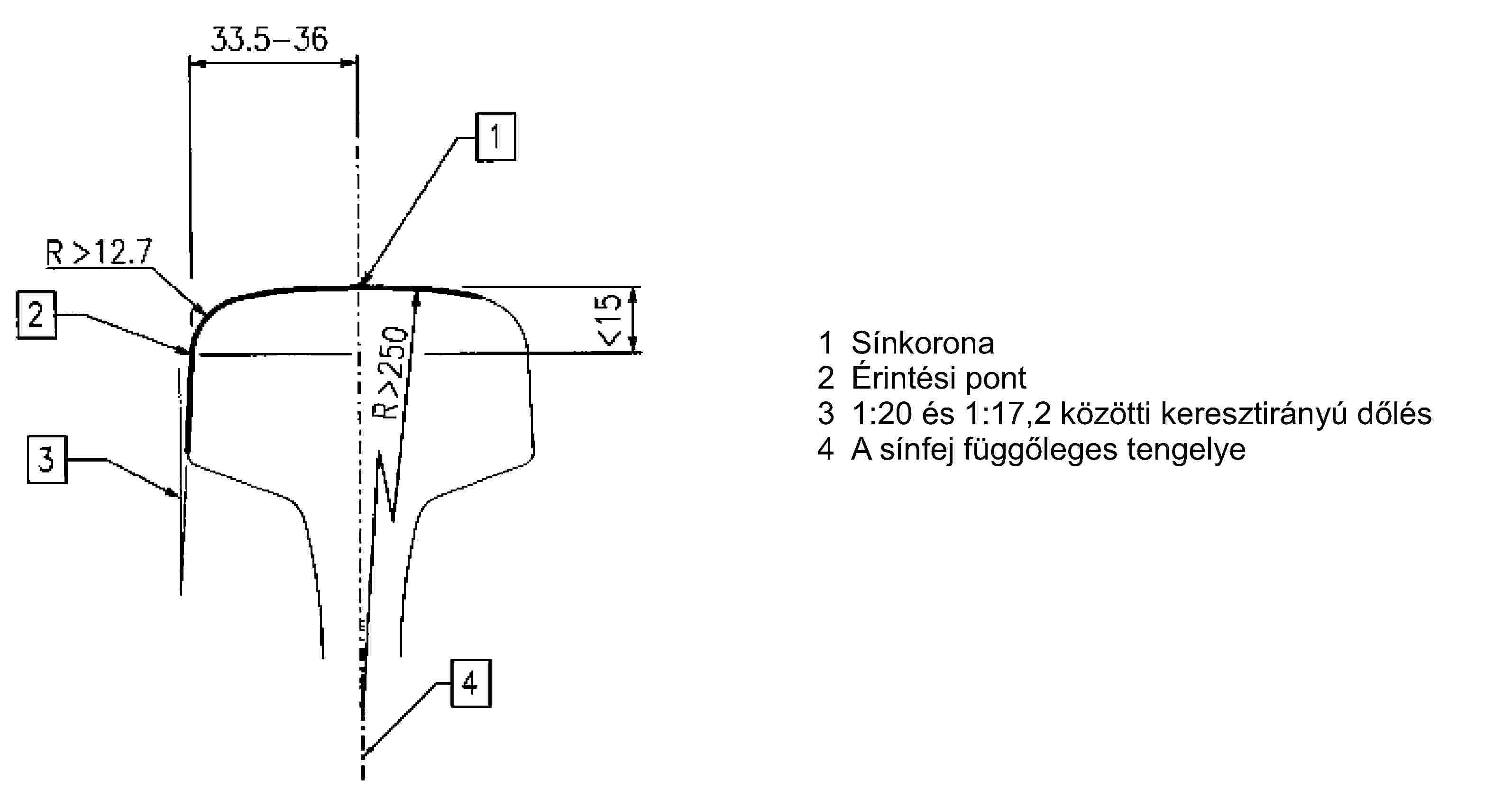 Sínkorona / Schienenoberkante / Niveau supérieur du champignon du rail | Lásd az 5.3.1.1. pontban lévő ábrát. |