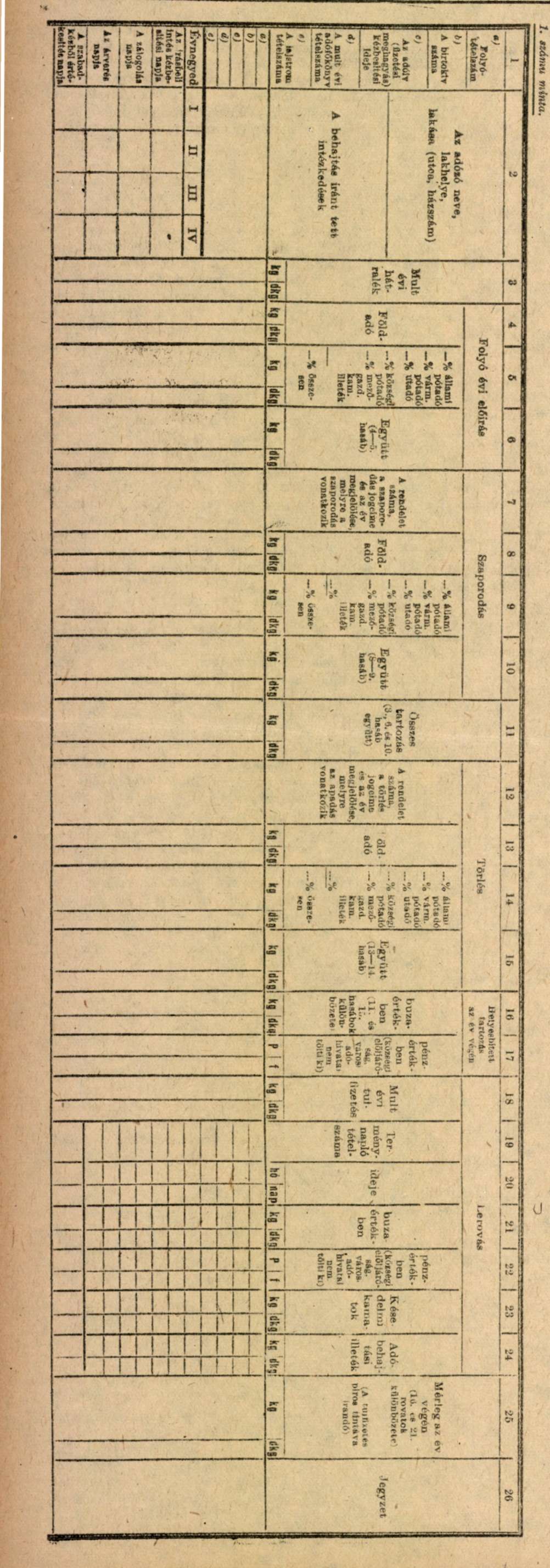 Ez az összeg jelenti az 1945. évre dekagrammokban kifejezve az egyes adófizetőkre búzában kivetett földadót. Az egyénenkinti földadó kivetésénél az egy dekagrammnál kisebb sulyegységeket el kell hagyni, illetőleg felfelé egész dekagrammra ki kell kerekíteni oly módon, hogy a földadókivetési lajstrom 8. vagy 14., illetőleg 20. hasábjába bejegyzett adatok összege minden oldalon a pénzértékben kivetett földadók oldalösszegének 2.5-es szorzatával teljesen megegyezzék.