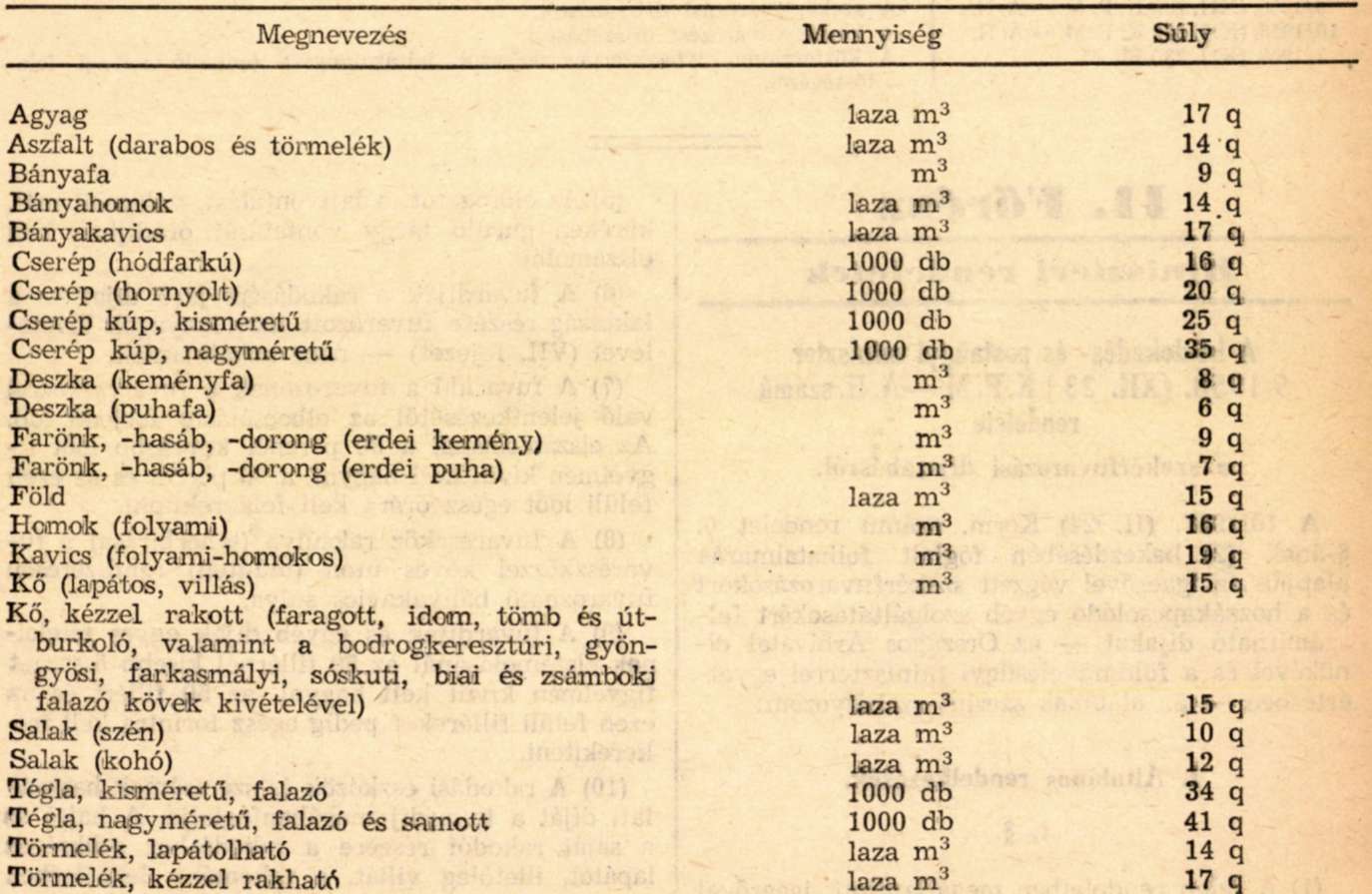 b) nehéz tárgyak rakodásához szükséges felszereléseknek a felrakás helyére való fuvarozásáért, illetőleg a lerakás helyéről való elfuvarozásáért, ha azok súlya az 5 q-át meghaladja (üres menet) 40 Ft