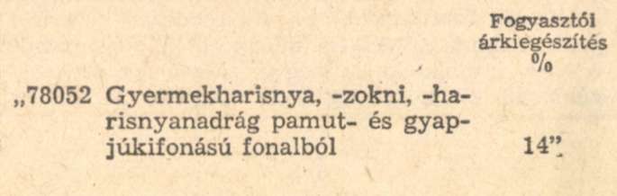 5. A 78031 bevallási kódszámhoz tartozó termékek közül a "Gyermekharisnya, -zokni, -harisnyanadrág pamut- és gyapjúkifonású fonalból" megnevezés törlendő.
