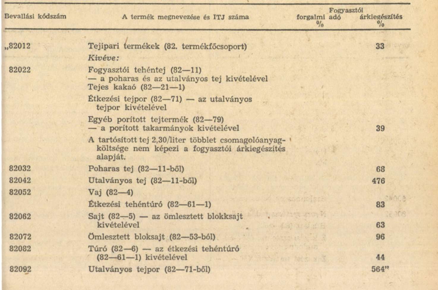 a 04542 bevallási kódszám alatt szereplő 148 Ft-os fogyasztói árkiegészítési tétel 155 Ft-ra,