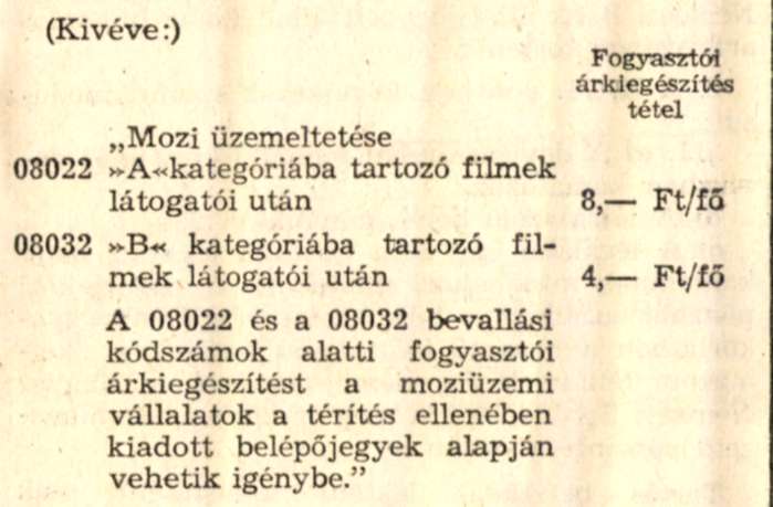 a 04532 bevallási kódszám alatt szereplő 139 Ft-os fogyasztói árkiegészítési tétel 155 Ft-ra,
