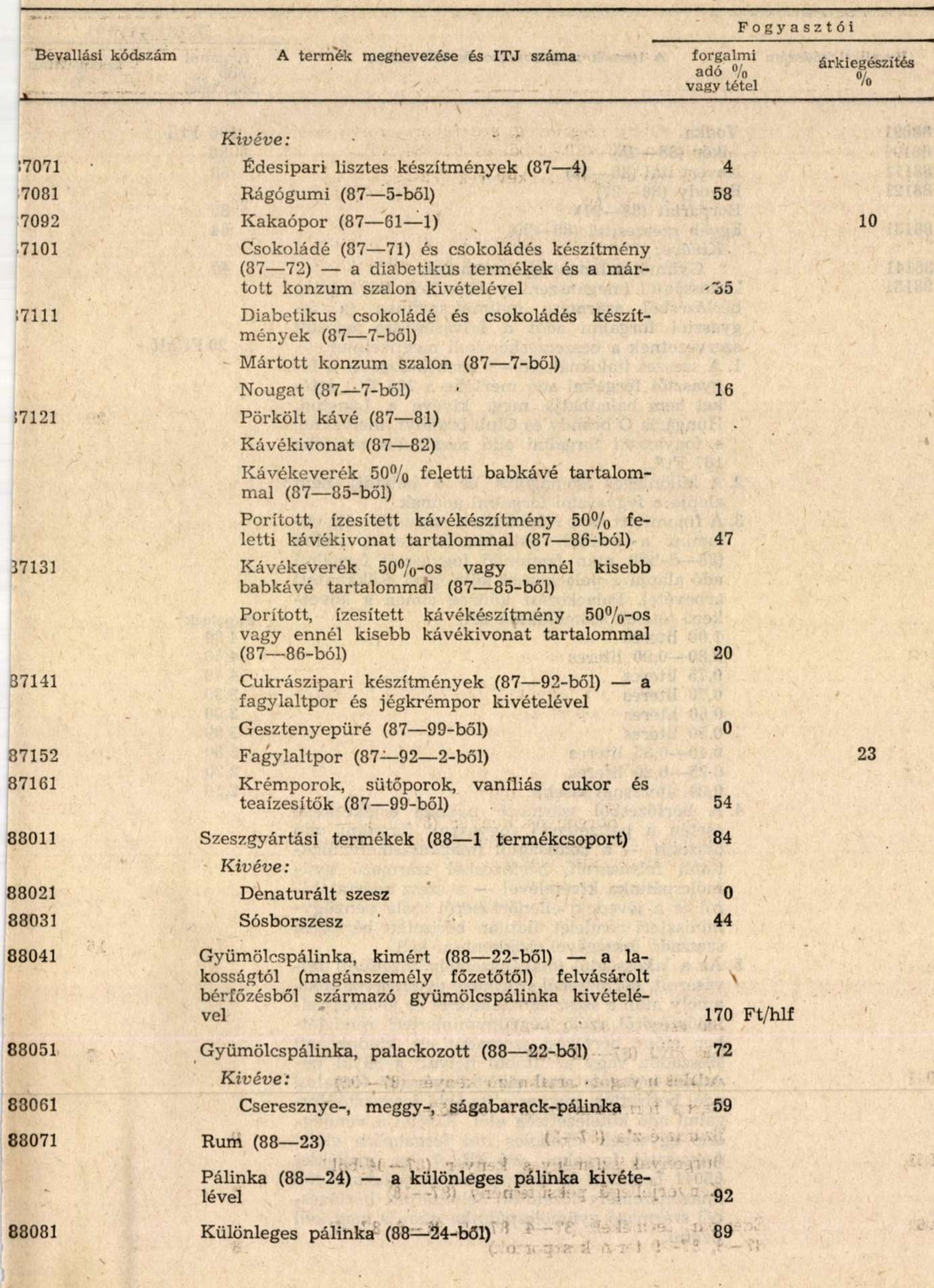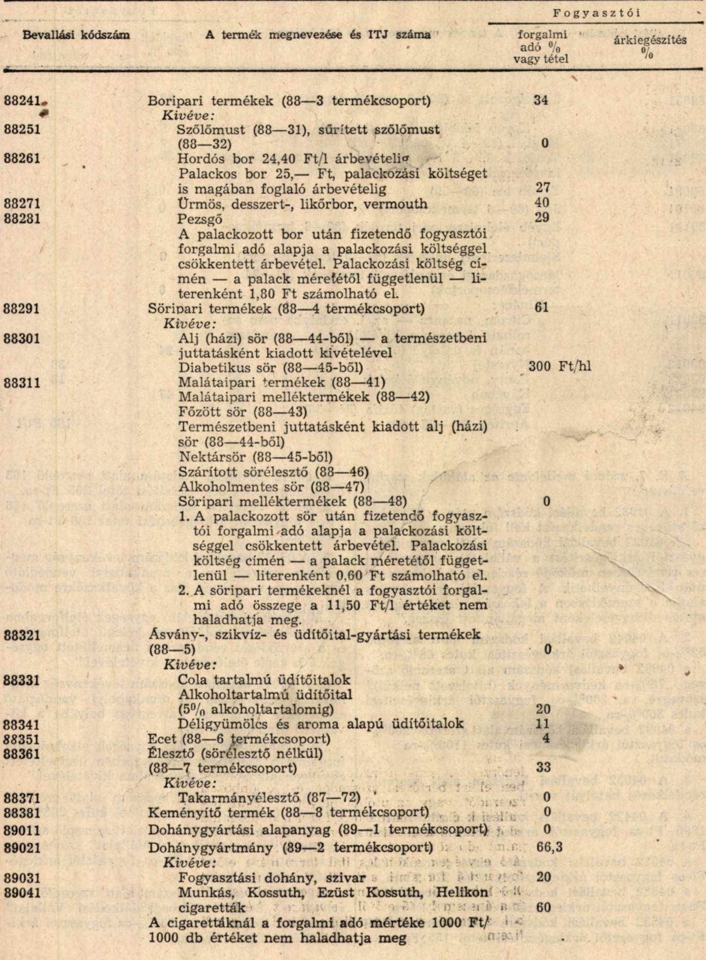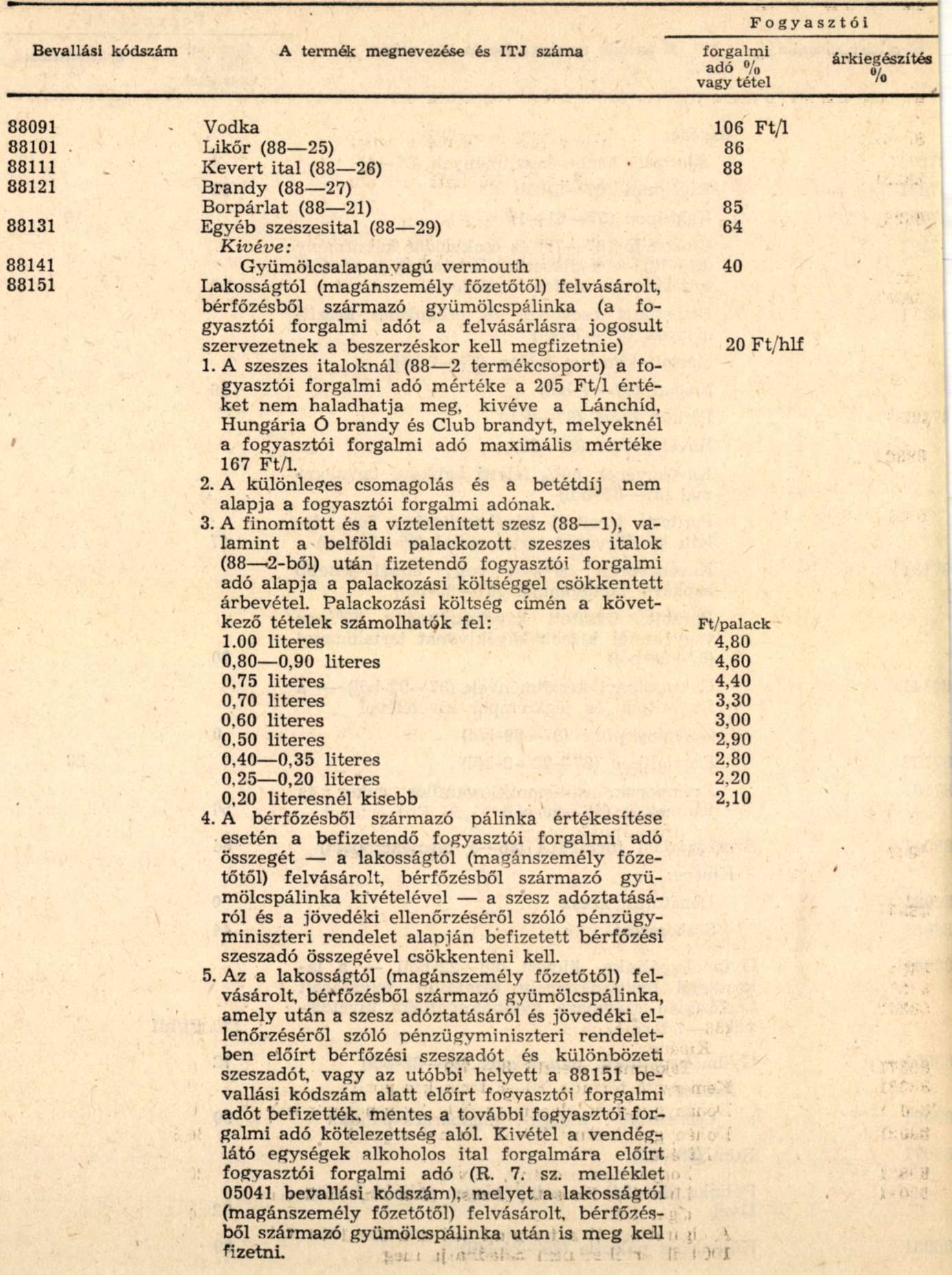 2. Az alapanyagként (közvetlen anyagként) felhasznált szeszgyártási termékeket (88-1) a termelő vállalatok fogyasztói forgalmi adó nélküli áron szerezhetik be. A kutató intézetek szeszfelhasználása fogyasztói forgalmi adó köteles.