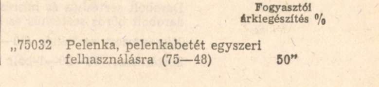 A 75021 bevallási kódszám termék megnevezés szövege "Vatta, kötszer, egészségügyi cikkek (75-3, 75-4) - a pelenka, pelenkabetét egyszeri felhasználásra (75-48) kivételével" szövegre módosul és utána a következő rendelkezést kell felvenni: