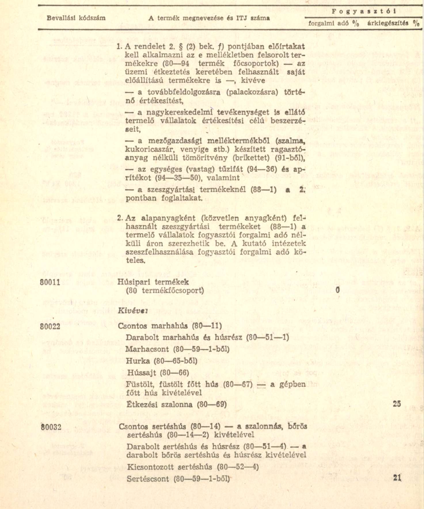 A fogyasztói forgalmi adóról és a fogyasztói kiegészítésről szóló módosított 60/1979. (XII. 1.) PM rendelet* (a továbbiakban: R) 2. (2) bekezdés f) pontja helyébe a következő rendelkezés lép:[1]