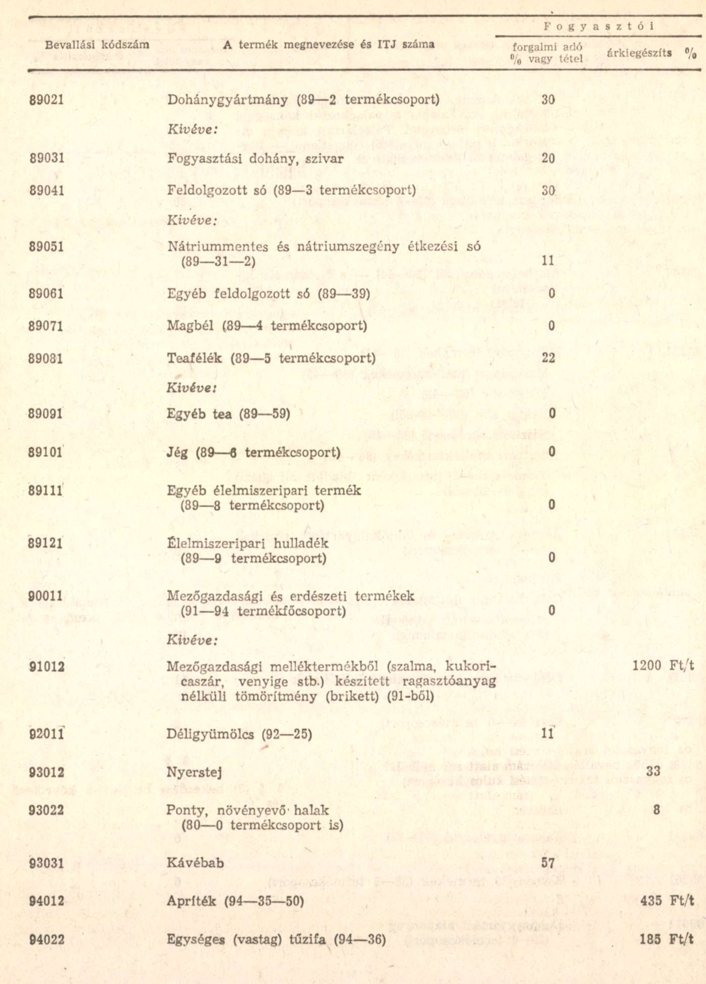 [Mentesek a fogyasztót forgalmi adó alól, illetve nem részesülhetnek fogyasztót árkiegészítésben]