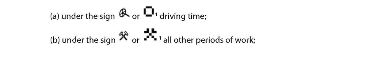 - a heti pihenőidők és a heti pihenőidők közötti vezetési idők;