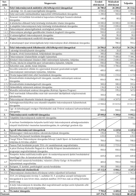 1. | A helyi önkormányzatok működésének általános támogatása | 154 094,9 | 152 544,7 | 152 522,1 |