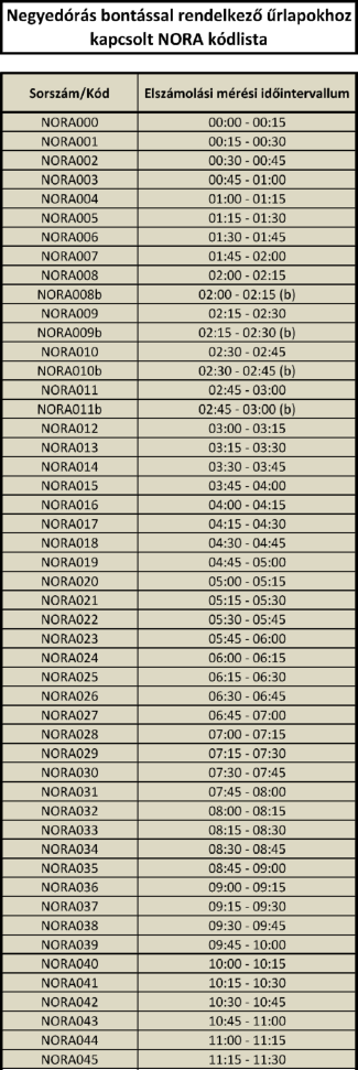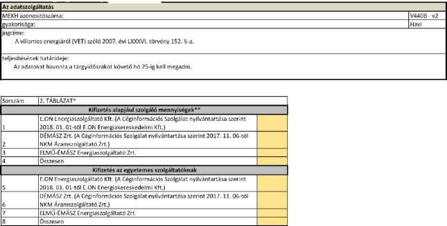 **Az egyetemes szolgáltatóknak való kifizetés alapjául szolgáló mennyiségek