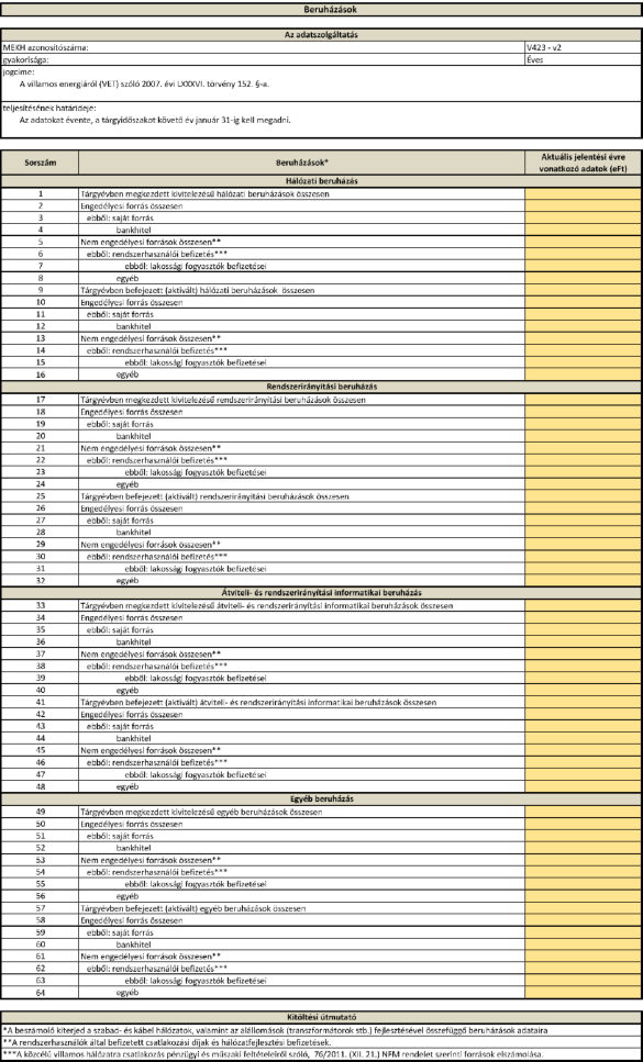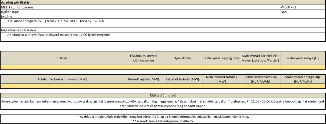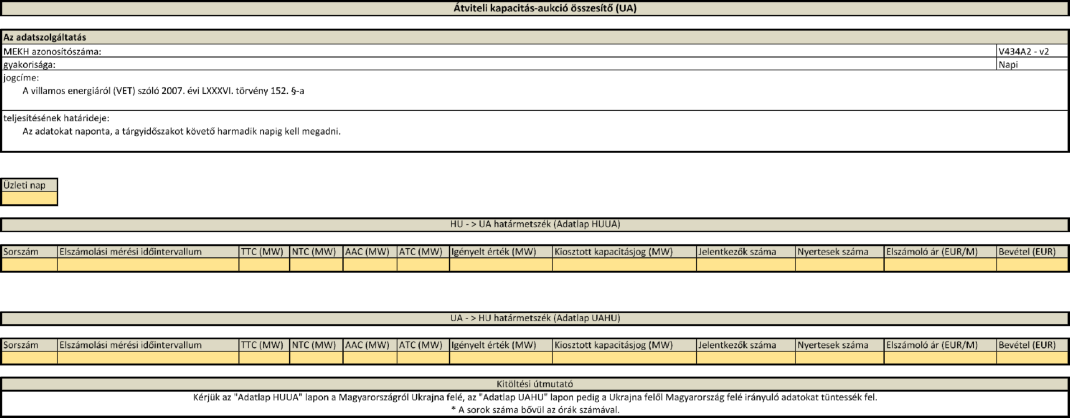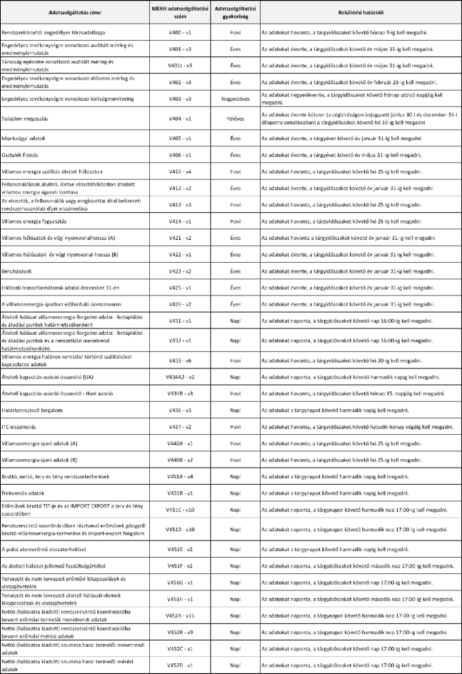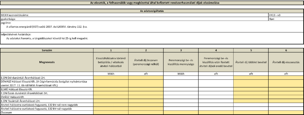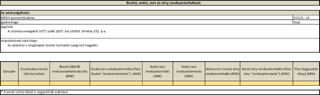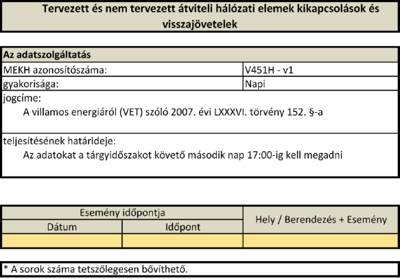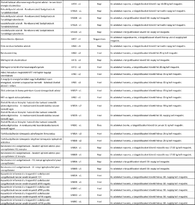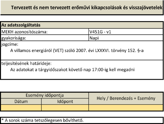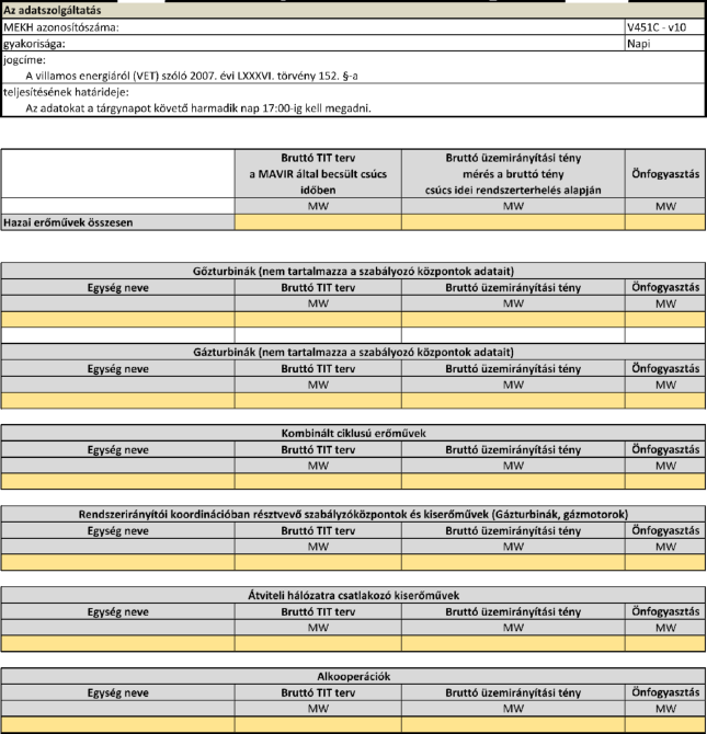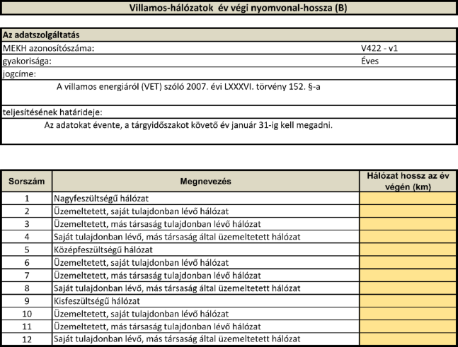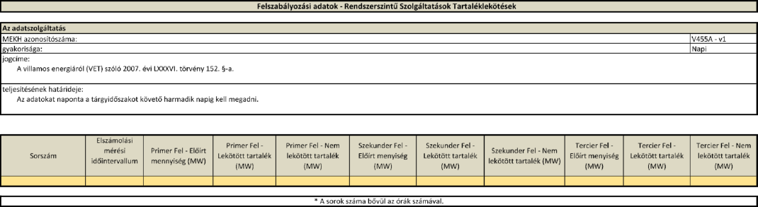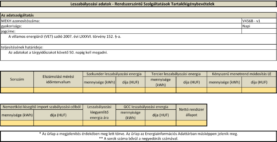 * 2017.01.01-től a MAVIR űrlapokon a korábbi 120 kV-os kategória 132 kV-os megnevezéssel szerepel, mivel a MAVIR Zrt. az Üzemi Szabályzatban - az európai sztenderdeknek való megfelelés érdekében - átnevezte ezt a feszültségszintet. Az adott sor adattartalma (fizikai értelemben) nem változott.