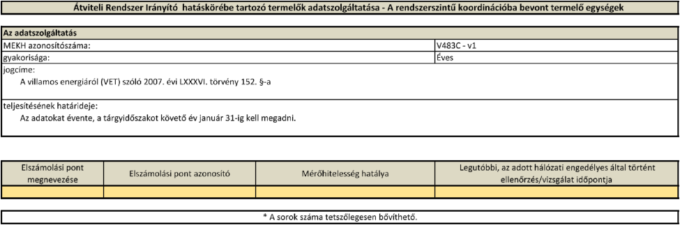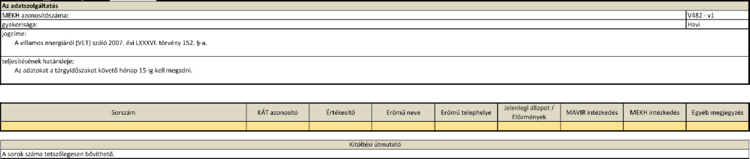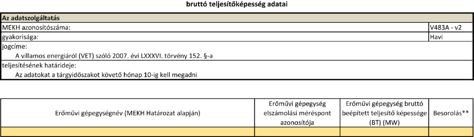 A V483A űrlap tartalma 2017. januártól csak azokat a Rendszerszintű koordinációba bevont gépegységeket tartalmazza, amelyek rendelkeznek MEKH által kiadott engedéllyel vagy KÁT kvótahatározattal és megkezdték a hálózatra a termelésüket. Az adatszolgáltatás tartalmazza azt is, hogy egy adott gépegység melyik erőmű, szabályozási központ vagy elosztó hálózati engedélyeshez tartozik, mely havonta aktualizálódik.