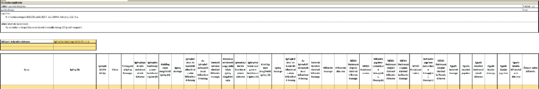 ** az adatlap az igénynek megfelelő számú sort tartalmazhat