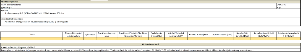 Kapacitásár információ a kiegyenlítő szabályozási szolgáltatások tender eredményeiről aFRR negatív