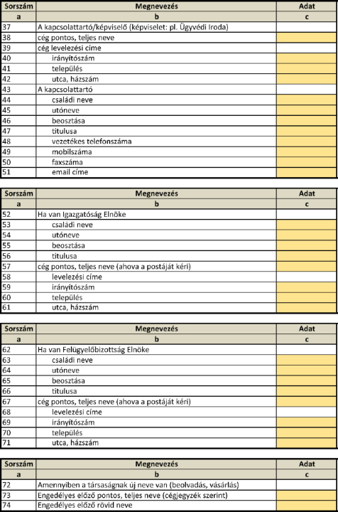 Az adatlap az igénynek megfelelő számú sort tartalmazhat.