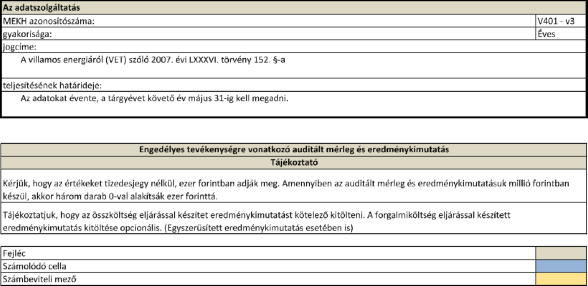 Engedélyes tevékenységre vonatkozó auditált mérlegés eredménykimutatás
