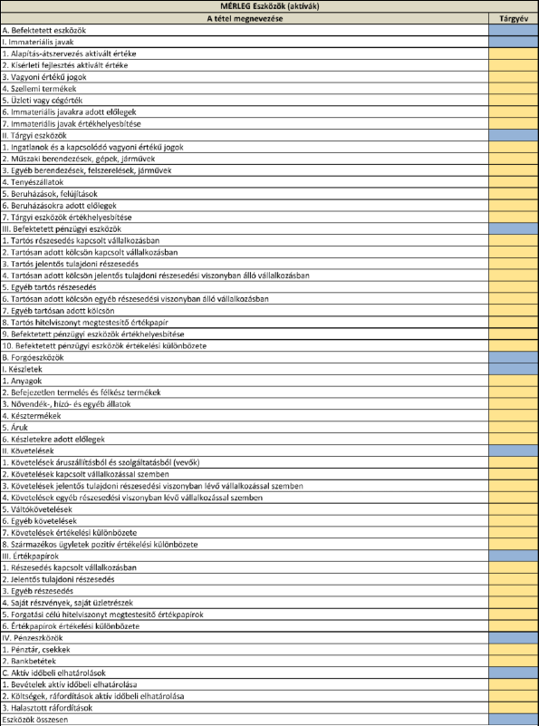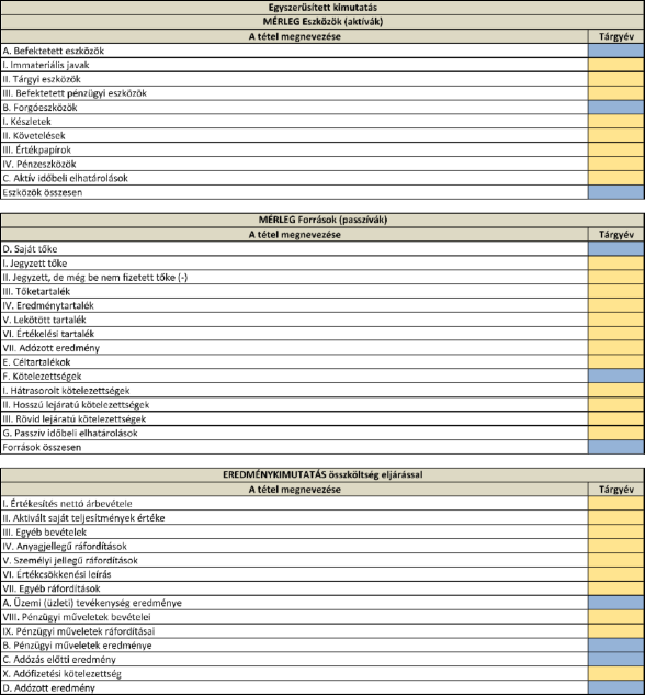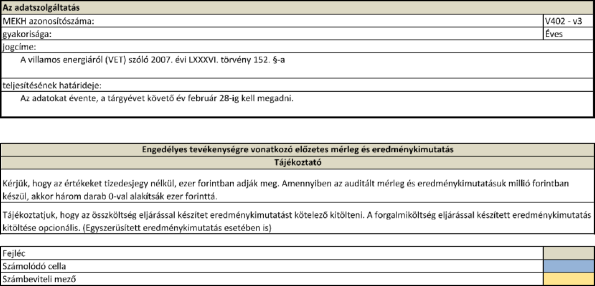 Engedélyes tevékenységre vonatkozó előzetes mérleg és eredménykimutatás