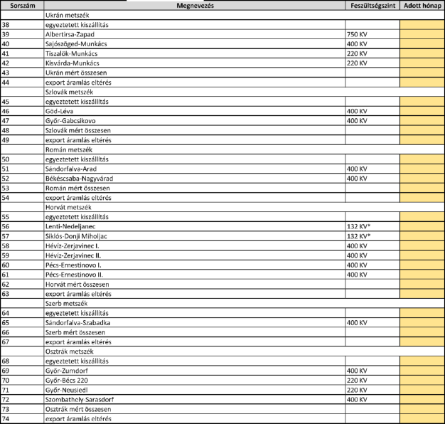 Villamos energia határon keresztül történő szállításával kapcsolatos adatok