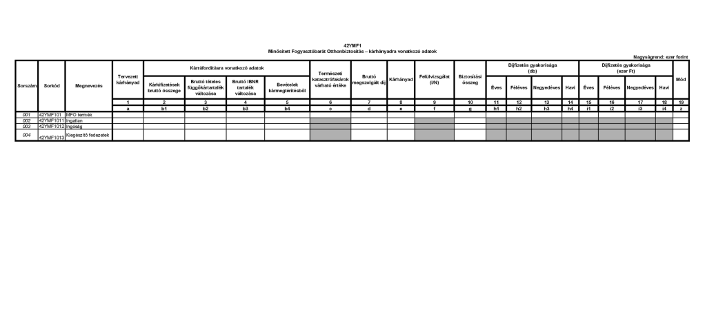 A 42Y1E1, 42Y1E2, 42Y1E3, 42Y14B, 42Y24, 42Q1E1, 42Q1E2, 42Q1E3 és 42Q14A1 kódú táblában a biztosító szerződésállományával kapcsolatos információkat termékcsoportos megbontás szerint kell bemutatni.