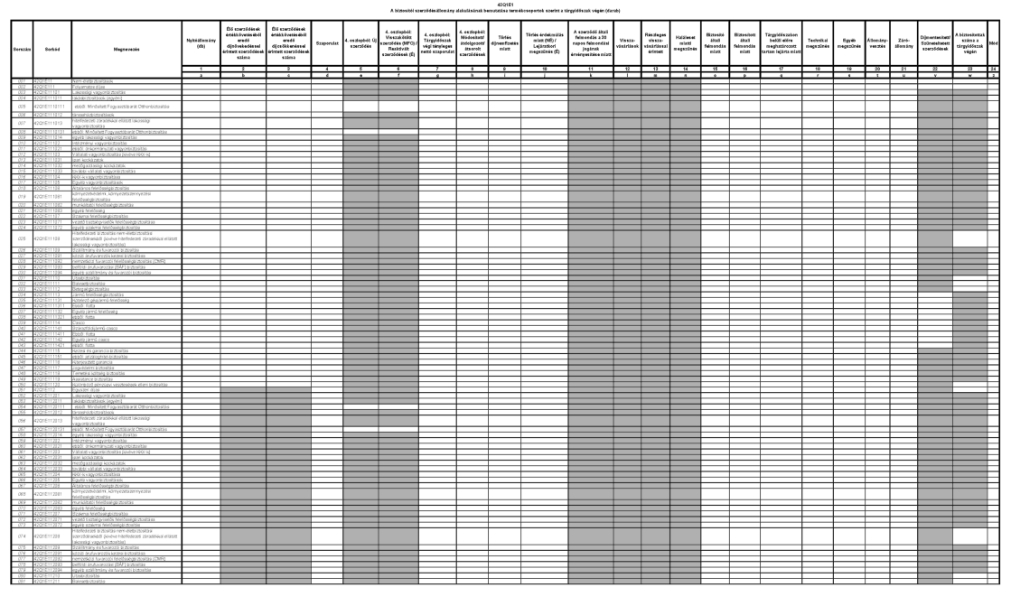 Az egyes, kiemelten is bemutatott termékcsoportok oszlopában szereplő értékek, valamint a 20., 25. és 30. Egyéb oszlopban jelentett értékek összegének meg kell egyezniük adott csoporton belül a 16., 21. és 26. Összesen oszlopok értékével.