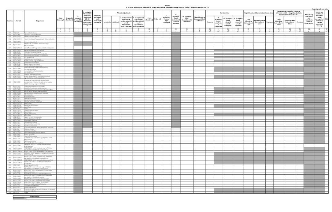 Az egyes, kiemelten is bemutatott termékcsoportok oszlopában szereplő értékek, valamint az 56. és 63. Egyéb oszlopban jelentett értékek összegének meg kell egyezniük adott csoporton belül az 52. és 57. Összesen oszlopok értékével.