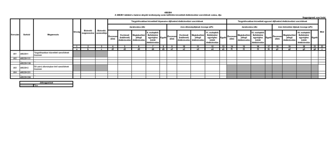 Ebben a táblában kell bemutatni - a 48B2B1 táblával megegyező szerkezetben és az ott előírtak szerint -a biztosításközvetítő által határon átnyúló tevékenység során külföldön közvetített életbiztosítási szerződések számát, díját.
