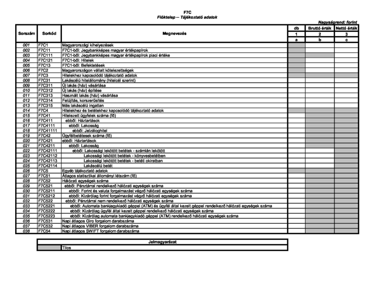 a módosító MNB rendelet 5. mellékletével megállapított 13. mellékletben foglalt kitöltési előírások szerint teljesíti.