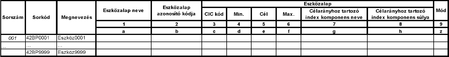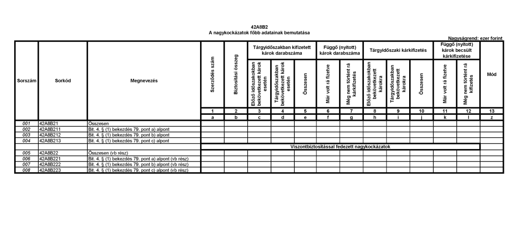A "Biztosító megnevezése" oszlopba a biztosítók aktuális nevét, a "Biztosító azonosítója" oszlopba a biztosító törzsszámát az MNB internetes honlapján a Felügyelet/Engedélyezés és intézményfelügyelés/Piaci szereplők keresése/Általános kereső menüpont alatt található adatbázisokban foglalt adatoknak megfelelően kell megadni. Határon átnyúló tevékenységet végző intézmények törzsszáma minden esetben 8.