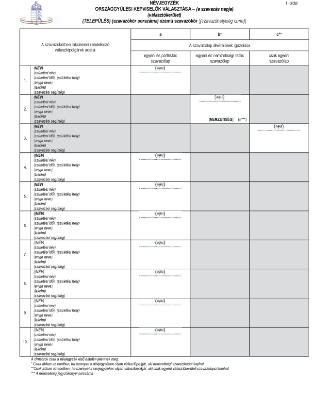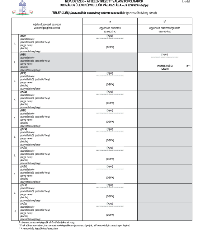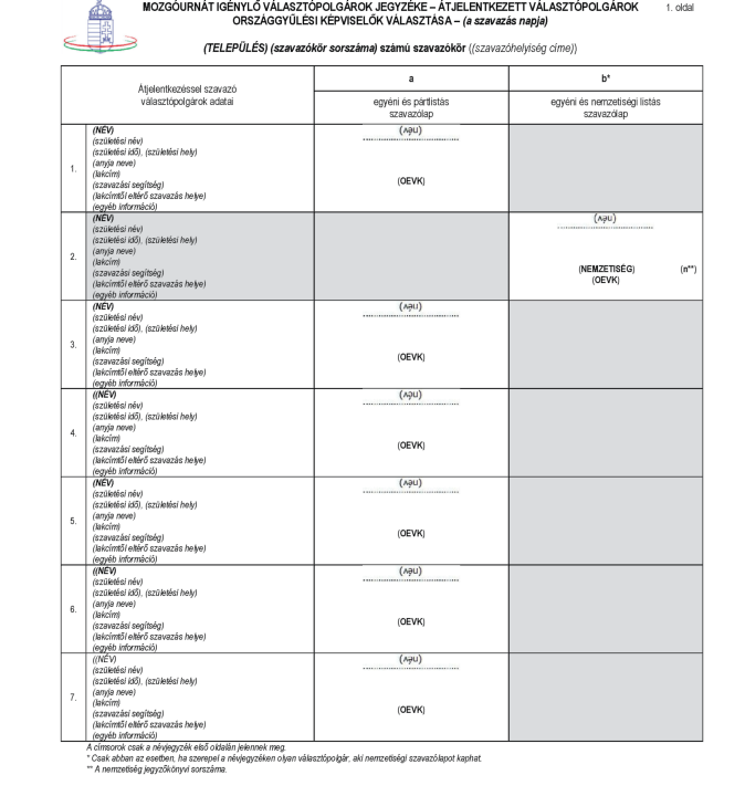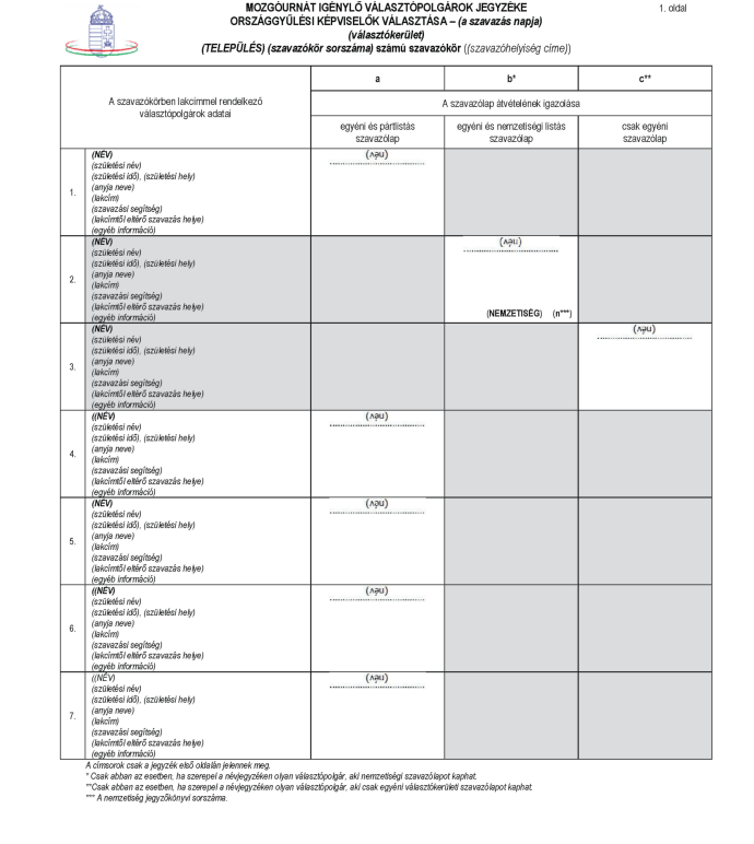 7. a névjegyzékből történő adatszolgáltatás elkészítéséhez,