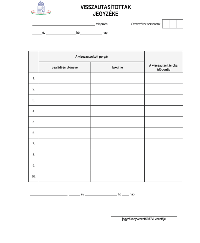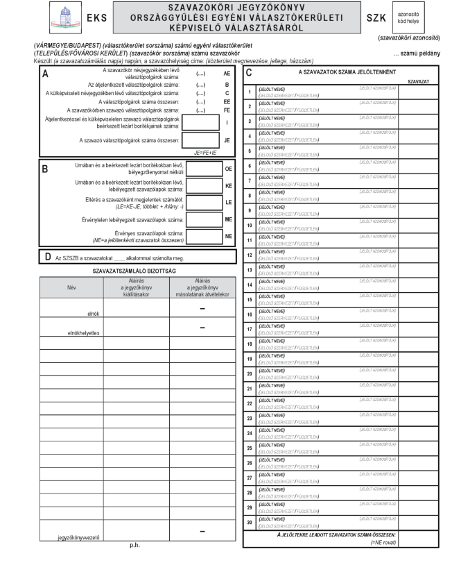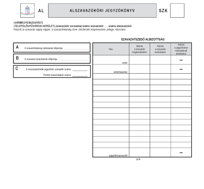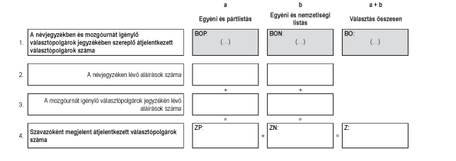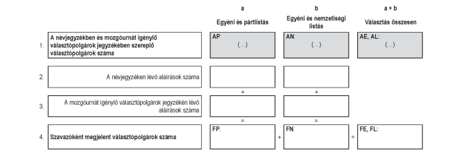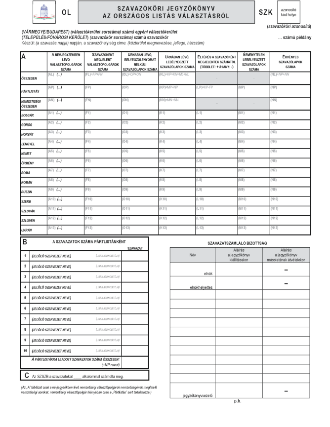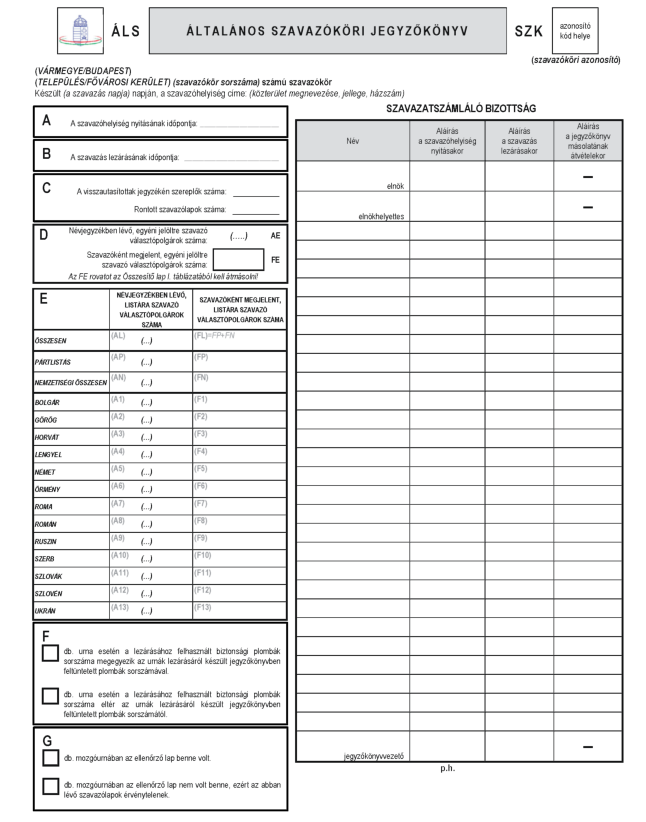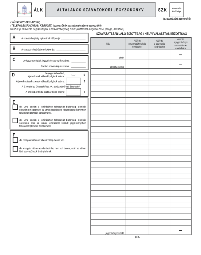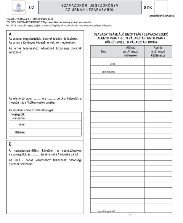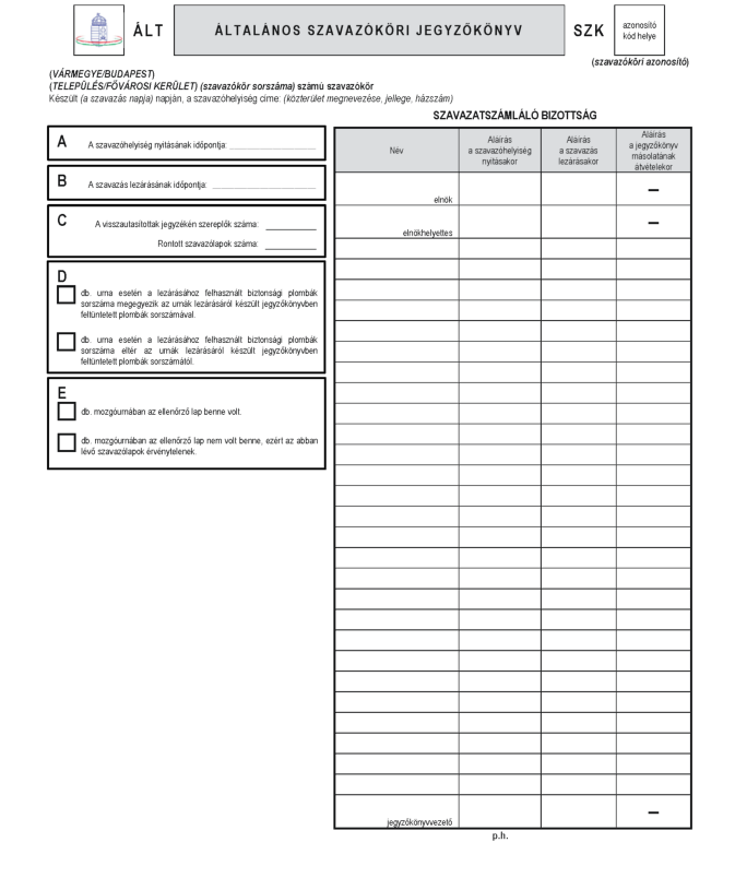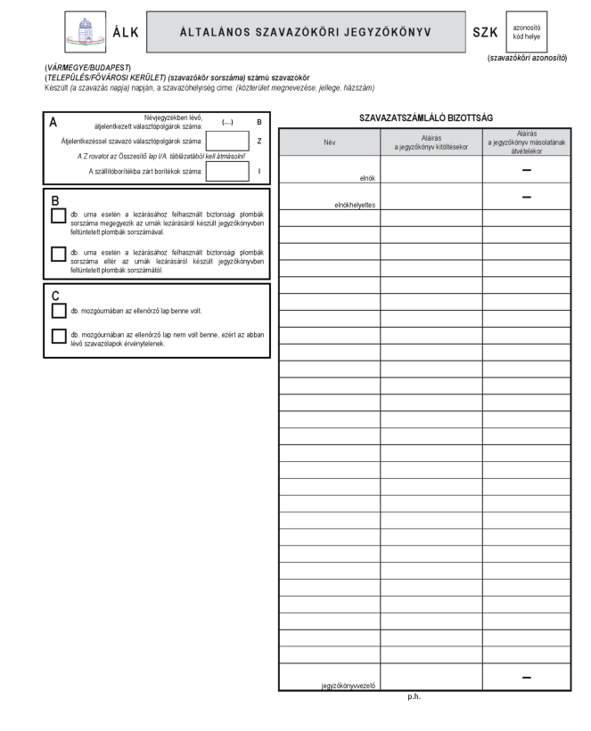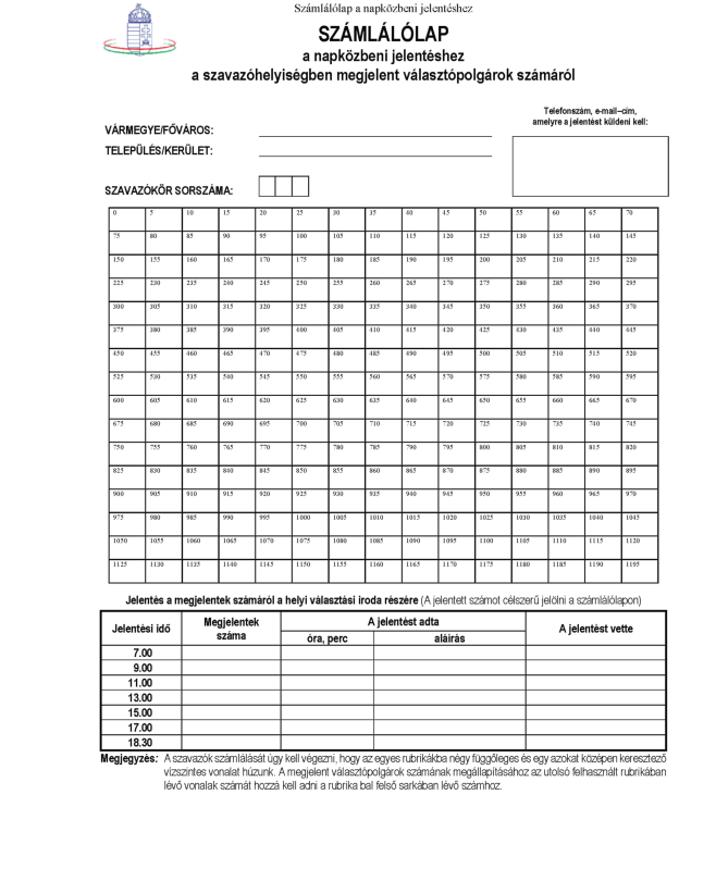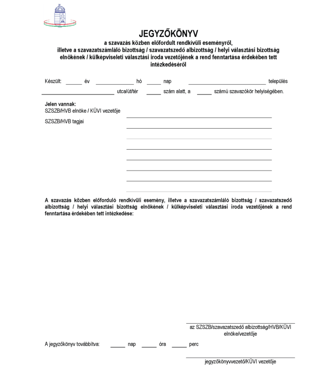 16. a rendkívüli események, a napközbeni részvételi adatok, valamint a szavazás lezárásának jelentéséhez,