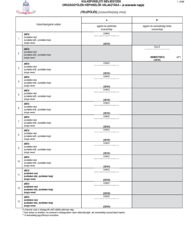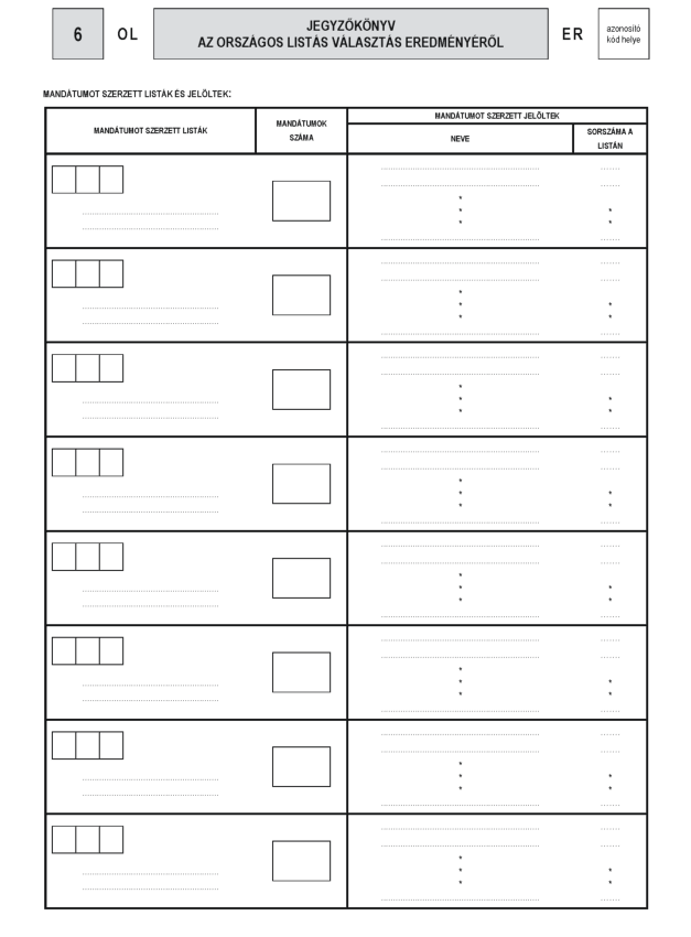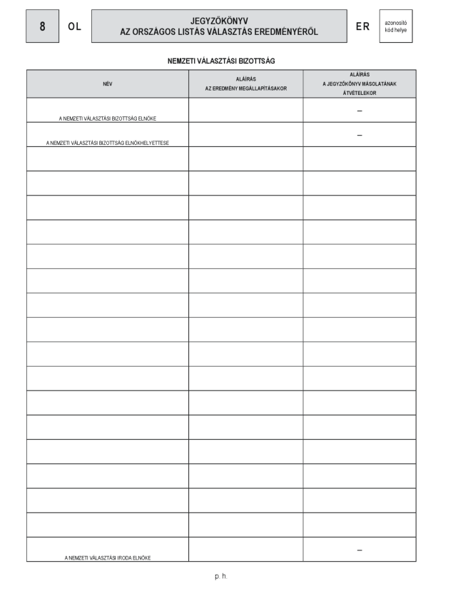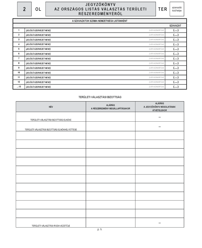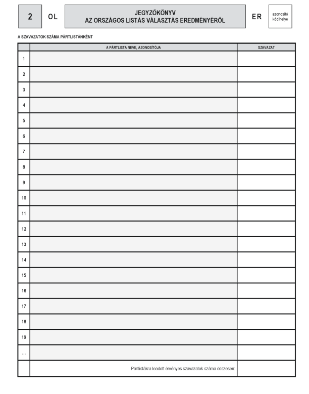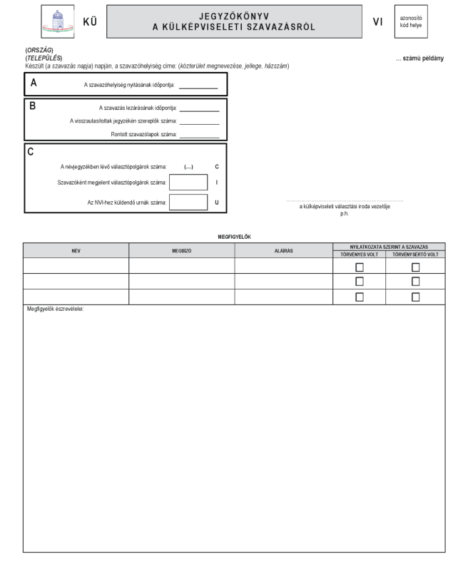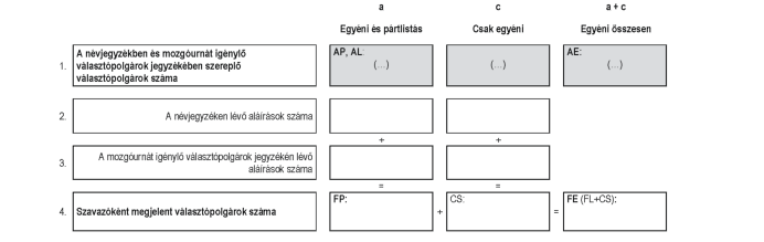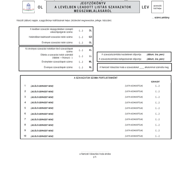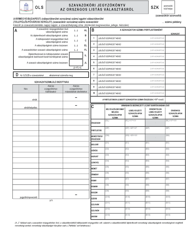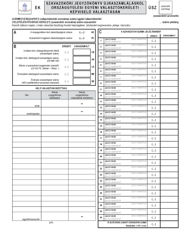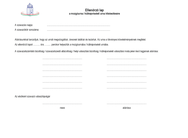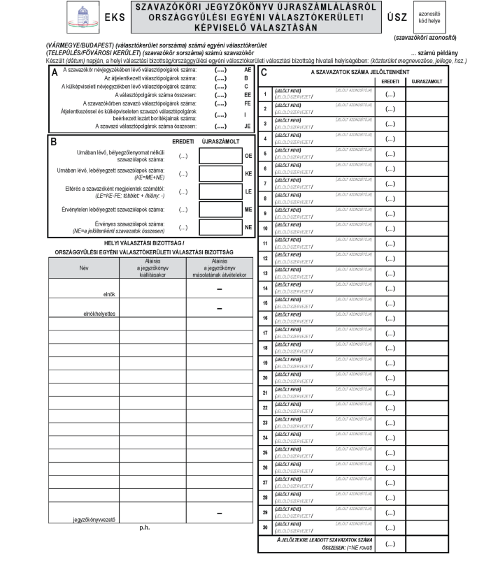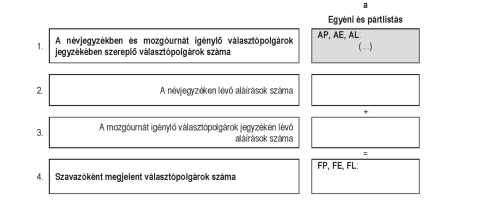 16. a rendkívüli események, a napközbeni részvételi adatok, valamint a szavazás lezárásának jelentéséhez,