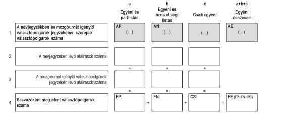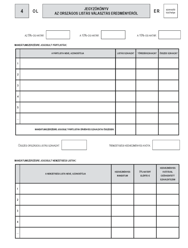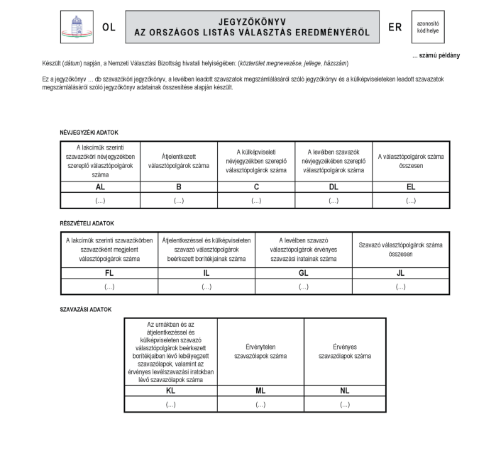 4. § Az országgyűlési képviselők választása eredményének országosan összesített adatai: