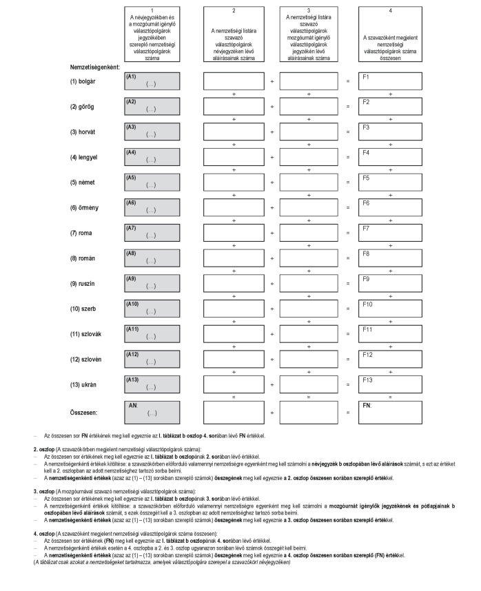 d) a szavazóként megjelent választópolgárok száma nemzetiségenként,