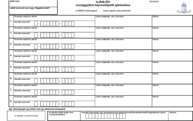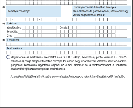 22. az ajánlóíveken szereplő, ellenőrzött ajánlásokhoz tartozó személyes adatokról történő tájékoztatáshoz.