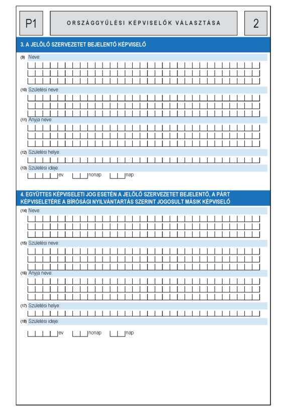 9. a jelölő szervezet képviseletére meghatalmazott személyek nyilvántartásához,