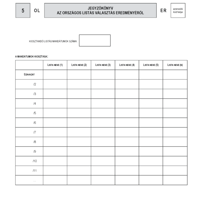 az országgyűlési képviselők választásán a választási irodák hatáskörébe tartozó feladatok végrehajtásának részletes szabályairól, a választási eredmény országosan összesített adatai körének megállapításáról, a fővárosi és vármegyei kormányhivatal választásokkal összefüggő informatikai feladatai ellátásának részletes szabályairól, valamint a választási eljárásban használandó nyomtatványokról