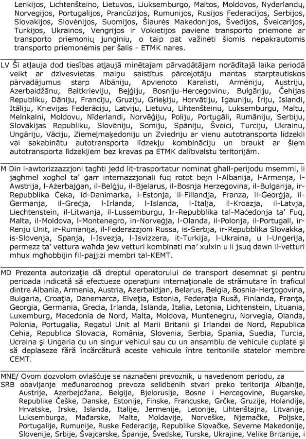 - tranzitforgalomban egy vagy több CEMT tagország területén keresztül, valamely CEMT tagországban nyilvántartásba vett járművel.