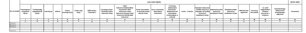 | (MNB azonosító kód | Megnevezés | Az adatszolgáltatók köre | Az adatszolgáltatás | |||